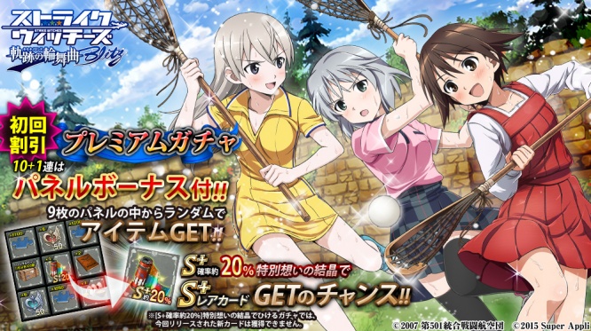 Webを通じて様々なコンテンツを提供する株式会社DMM.com(本社:東京都渋谷区、代表取締役社長 松栄立也、http://www.dmm.com/ 以下DMM )と、デジタルコンテンツの企画・開発及び運営を行う株式会社スーパーアプリ( 本社:愛知県名古屋市、代表取締役社長:飯沼 正樹、https://www.super-appli.co.jp/)は、DMM.comにてサービス提供中の『ストライクウィッチーズ 軌跡の輪舞曲 Blitz』において、スポーツを楽しむ宮藤・エイラ・サーニャが登場するプレミアムガチャを実施することをお知らせいたします。また、すでに開催中のイベントについてもお知らせいたします。