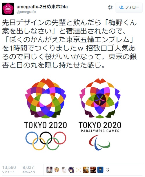 一般人が作った東京オリンピックのエンブレムを作りTwitterに公開 たちまち話題に
