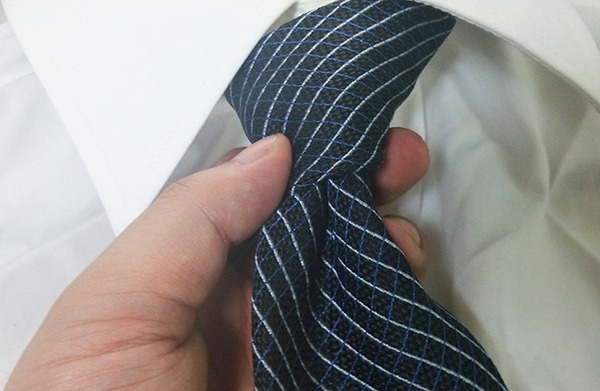ディンプルを上手に作ることで、ワンランク上のネクタイの結び方をすることができます。プレーンノットの場合は、最後にキュッと締める前段階まで結んでから、指を結び目の中に入れてくぼみを作ります。