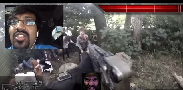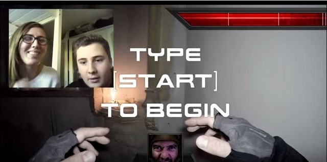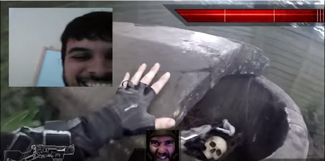 これは無作為に選ばれたユーザーと無料チャットが楽しめる、Chatroulette(※注:18歳未満禁止)というサイトを仲介に、口頭の指示で人間が扮する主人公キャラを操作する新しい試みのFPSです。なので、あらかじめロケ地にゾンビたちや各種アイテムや武器類、看板などを配置している模様。