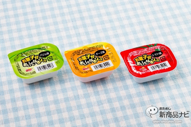 『お菓子がおいしくなるソース トマト味/チーズ味/バジル味』いろんなソースでスナックの味を変える新提案!