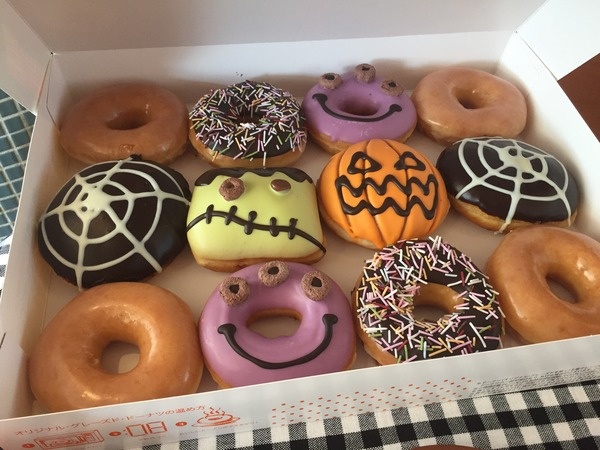 かわいい……。上にあげた3匹のモンスターに加えて、ハロウィン限定の『スパイダー チョコ カスタード』も入っているお得なセット。ハロウィンパーティーにはうってこいのボリューム感。定番の『オリジナル・グレーズド』も電子レンジで8秒温めて食べてくださいね。