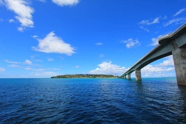 周囲8キロほどしかない、小さな古宇利島は、沖縄県北部の今帰仁村にあります。この島の特徴は、離島でありながら車で気軽に訪れることができるという点です。本島からまずは屋我地島という島に渡ると、そこから古宇利島まで、全長2キロほどの「古宇利大橋」がかかっています。青い青い海の上を進むのは、かなり爽快! 恋人との会話も盛り上がることでしょう。