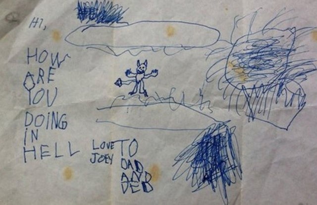 【何があった?】純粋な子どもが描くイラストが大変なことに…!? (1/4ページ) 2015.10.18 19:00 ViRATES 【何があった?】純粋な子どもが描くイラストが大変なことに…!? 無邪気さゆえに、ときに残酷で、ときにストレートだったりする子どもの絵。 悪意がないのは確かなのだが・・・、大人が見たら無言になってしまいそうな絵たちをご紹介しよう。 画像出典:Izismile 「やぁ、地獄ではどう過ごしてるの? 愛するジョーイより。パパとジェイドへ」 画像出典:Izismile 「もし レプラコーン(アイルランド伝承の妖精)を見つけたら、殺すよ。」 画像出典:Izismile 見たまんま描いたのだろう・・・。 次のページへ 1234 次へ>>