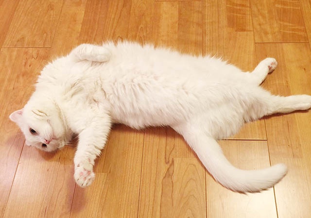リラックス〜リラックスにゃ。緊張してきちゃったら、このコットンのモフモフなお腹を思い出してほしいにゃ。大丈夫〜大丈夫〜!