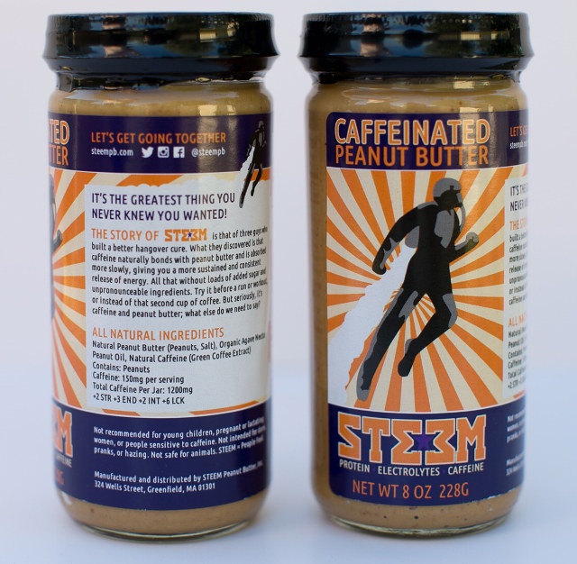 カフェイン入りピーナッツバター『STEEM』は、カフェインの他、タンパク質、電解質も同時に取れる食品。