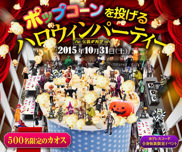 POP CORN ハロウィン実行委員会は、「POP CORN ハロウィン」を、2015年10月31日(土)に六本木で開催する。同イベントは、ポップコーンを投げ合う参加型パーティーで、日本では初めての開催という。はじめハロウィン仮装をした参加者による通常のパーティーが行われ、決められた時刻になると、合図とともにポップコーンガールが登場。参加者全員で互いにポップコーンを投げ合う「POP CORN BATTLE(ポップコーンバトル)」が行われるとのこと。