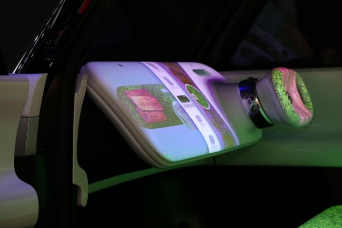 シートやドア内張などをスクリーン代わりに使い、様々な映像を映し出すことで、インテリアを様々にアレンジできる工夫がしてあるのだ。