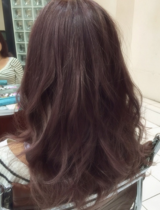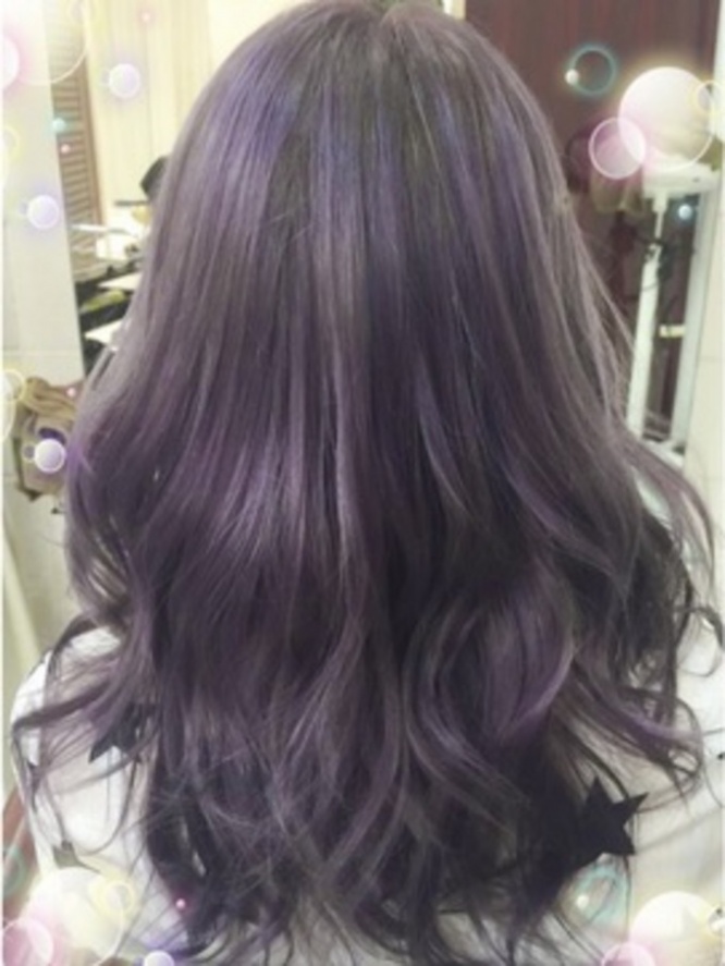 2回ブリーチ後、アッシュグレーとパープルで透明感もあり、ほんのりピンクの可愛いカラーです。