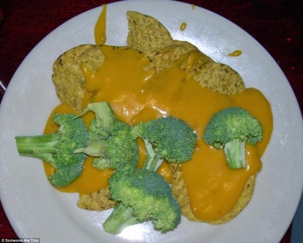 ナチョスの上に大量のチーズソース、生のブロッコリーを乗せた料理です。タコスもチーズソースもブロッコリーも単体で食べれば美味しいのですが全部合わせたら相性はいかがなものでしょうか。海外ではブロッコリーを生で食べるのが普通なのかも気になるところです。