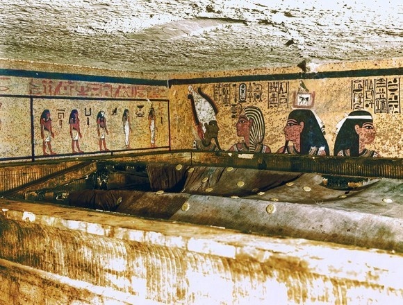 扉を開け、ツタンカーメンの棺を発見した瞬間。