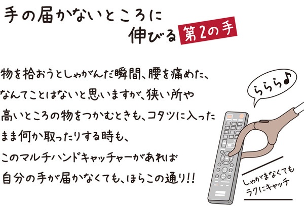 — あっきー (´υ`) (@AKB_45) 2015, 11月 18 これは遠くにあるものを取り寄せるというグッズでいわゆる「マジックハンド」。公式サイトの情報によると・・・あなたの手の届かないところへ伸びる第2の手。物を拾おうとしゃがんだ瞬間、腰を痛めた、なんてことはないとは思いますが、狭いところや、高いところも物をつかむときも、こたつに入ったまま何かを取ったりする時も、このマルチハンドキャッチャーがあれば、自分の手が届かなくても、ほうらこの通り・・・。