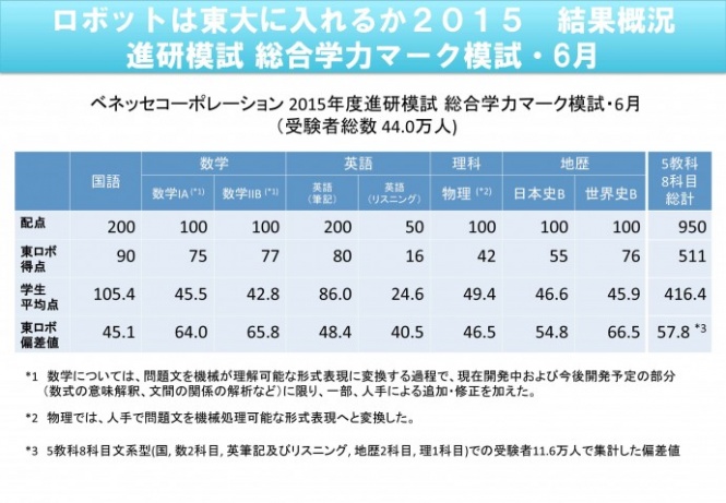 そんな『東ロボくん』が、今回受けたのは6月に行われたベネッセコーポレーションの『進研模試』。