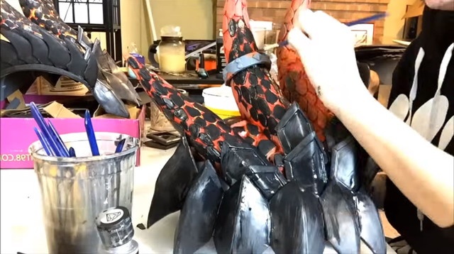 説明を聞いていると、肩パーツはベルクロとバックルでガッチリ固定されており、前後左右方向の揺れでも外れないよう工夫されているだけでなく、ベルトを締めれば身体にフィットするように調節も可能という機能性も持ち合わせています。背中の部分はマントと長い髪の毛で覆い隠せばバレないので、いくらゴチャゴチャしていても大丈夫なのだとか。