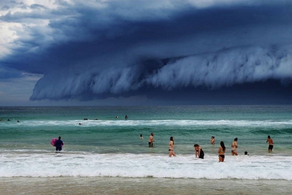 11月6日、オーストラリア、シドニーのボンダイ海岸で巨大なアーチ雲が発生した。その光景はまるで巨大な津波が陸地へと襲い掛かってくるようで、目撃者は恐れおののいたという。 記事提供=カラパイア