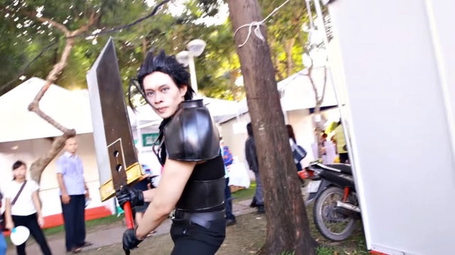 妙に真に迫った、『ファイナルファンタジーVII』ザックス・フェア。斬りかからんとする姿はソルジャーそのものです。