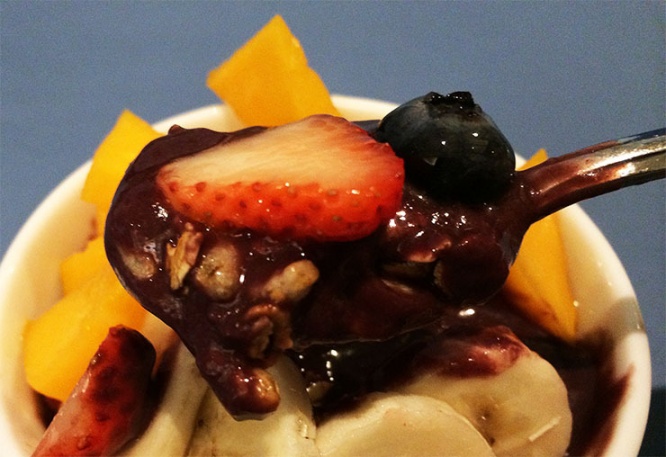 オックステールスープは、大きなぶつ切りテールがゴロンと2つも入っているクリアなスープ。テールを丹念に刻まれた生姜にからめ、豪快に頬張る。その瞬間、牛肉からこんな味が生まれるのか! という驚きに全身が包まれる。アサイーは限りなく優しい甘さをしており、ほとんど酸味がない。イチゴやバナナの微弱な酸味を限りなく優しいアサイーが包む。ハワイに行かずしてこのクオリティ。