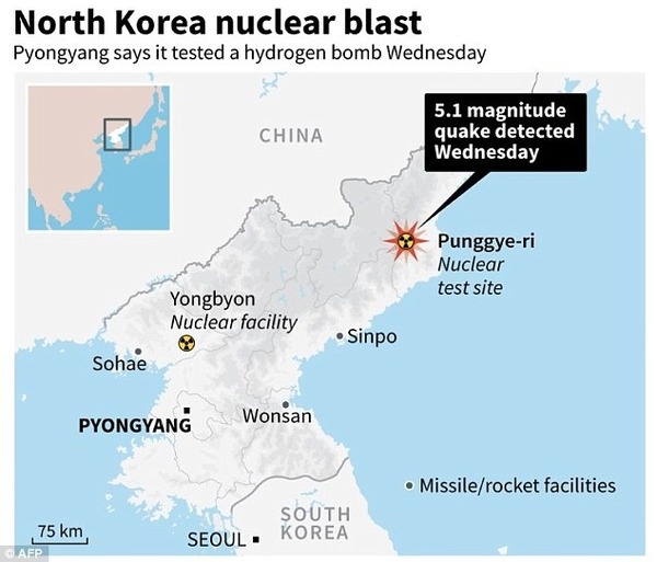 DailyMailによると、地下核施設は以前から指摘されている豊渓里(プンゲリ)で、人工地震はM5.1ということです。これほど大きな地震が発生するということはそれだけ莫大な爆発力があったとみているようで、実験が成功していることを示唆しているようだ。