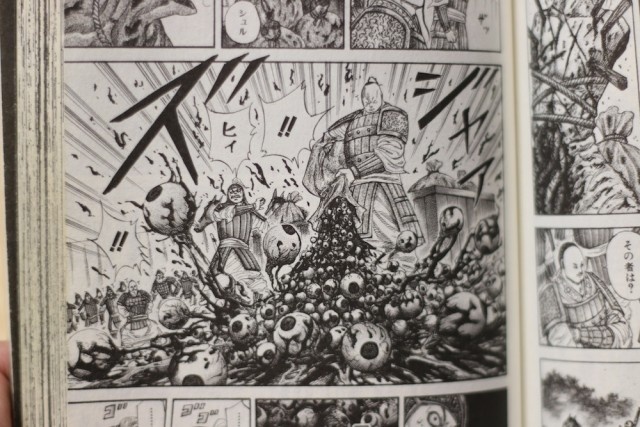 ストーリーが気になりながらも、死体の数も増えていきます。『キングダム』、序盤からけっこういろいろな殺し方のパターンを繰り出してきました。