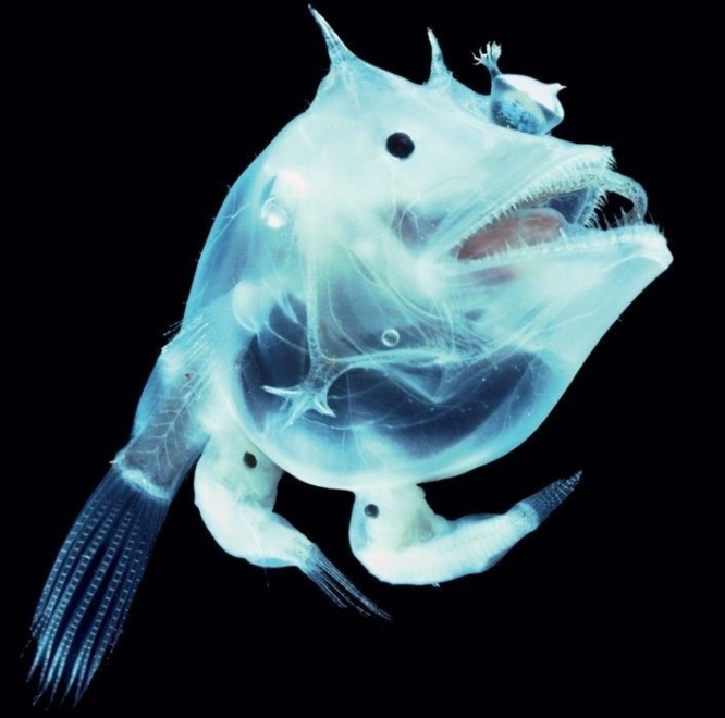 メスに比べ15〜30倍もの生息数がいるオスは、深海でメスに遭遇すると、大きなメスの体に吸いつき、皮膚と血管から栄養を吸収します。そして、驚くことに、次第に同化して生殖を果たすと、メスの体に溶け込んでしまいます。