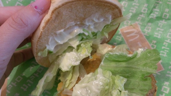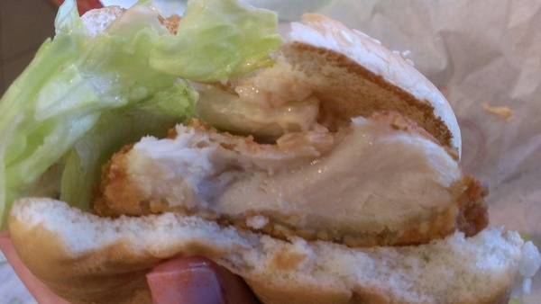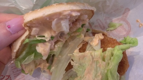 レタスは100円のチキンクリスプに比べて増量されていますが、パティはチキンクリスプと同じものが使用されています。