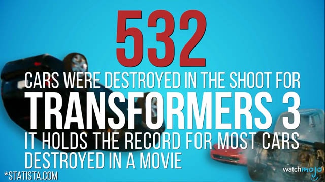 『トランスフォーマー』シリーズは車が変形する映画なので、もともと車はたくさん登場しますが、破壊された車の数が532台です。これは1本の映画で破壊された車の台数の世界記録とのこと。