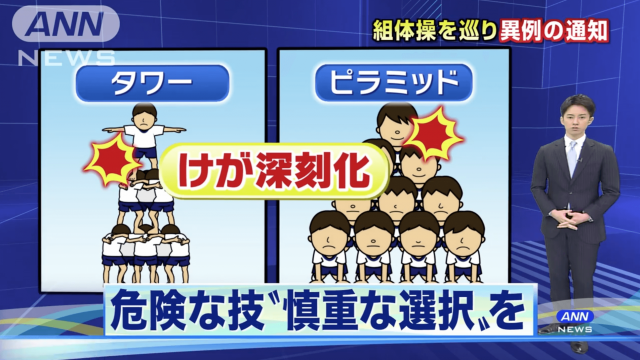 参照:NHK/組み体操 危険性高い2種目 都立校は新年度中止へ