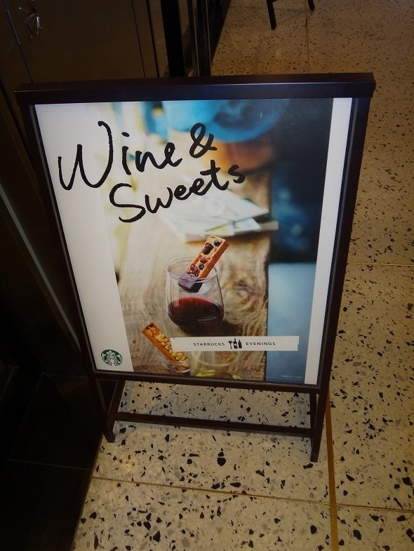 2016年3月30日から丸の内新東京ビル店にて、「Starbucks Evenings」というお酒とスイーツを楽しめるサービスがスタートした。「Evenings」と言っても、オープンと同時にお酒をオーダーできるので、いつ行っても大丈夫。