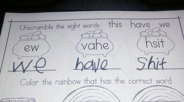 本来ならば「we have this」と解答欄に、書くべきところを「we have shit」(私たちはうんちをします)と書いてしまったのだ。