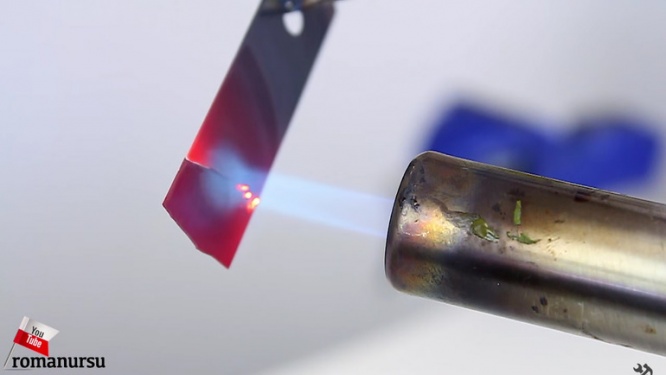あとは、カッターの刃をバーナーでアツアツになるまで熱し…。