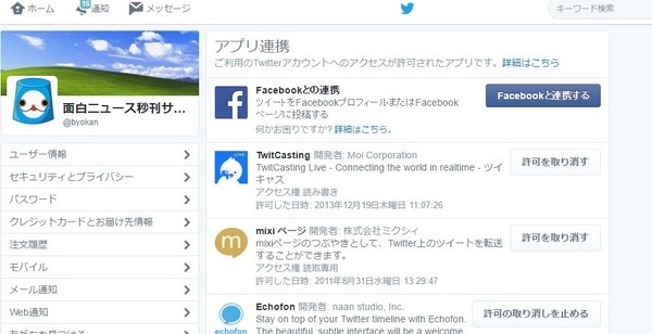 万が一アプリ連携でこのアカウントを承認してしまった場合は以下の手順で解除可能