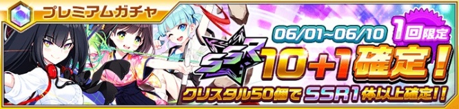 期間中に出現する10+1専用ガチャを回すと、SSRが1体以上確定で出現します!