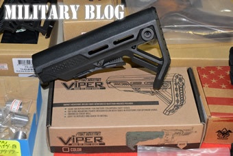 また、目新しいアイテムとしては、斬新なデザインで近年注目が集まるStrike Industries製のViperストックが陳列されていた。細身で機能的なデザインを目指すM4ユーザーにはピッタリのアイテム。