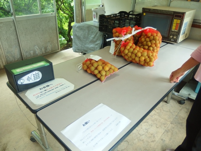 通年ではありませんが、果物のシーズンには無人の直売所に園内で取れた果物が並ぶことも。