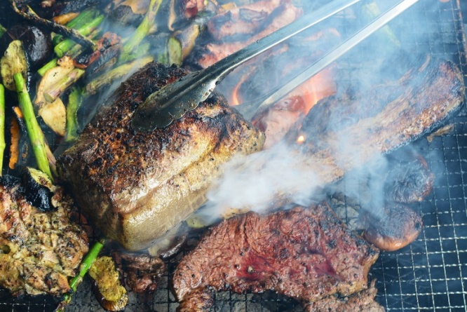 本格的なBBQグリルで焼いたジューシーな肉や野菜を堪能!