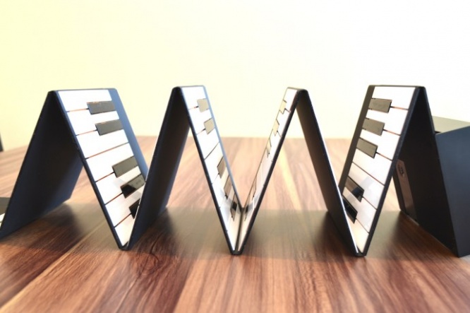 憧れのグランドピアノが鞄に入った! 折りたたみ式の『大人の紙鍵盤』でいつでも何処でも演奏できる