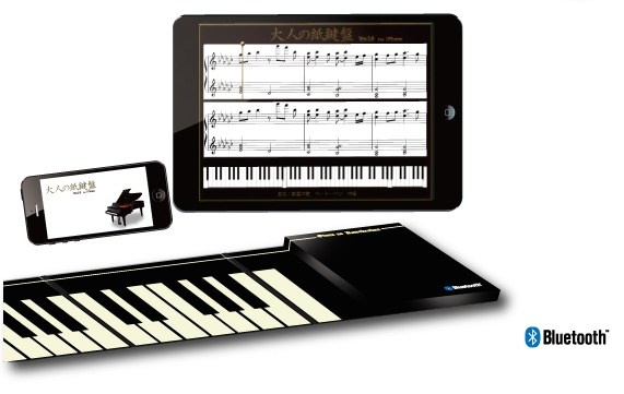 但し、演奏するときはiPhoneかiPadが必要で、『大人の紙鍵盤』単体では使えない。BluetoothでiPhoneやiPadに接続し、専用アプリを起動することで演奏が可能になる。