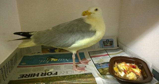 参照・画像出典:Daily Mail/Seagull that turned into a korma-rant: Hungry bird is rescued after falling into a huge vat of CURRY – leaving it dyed bright orange