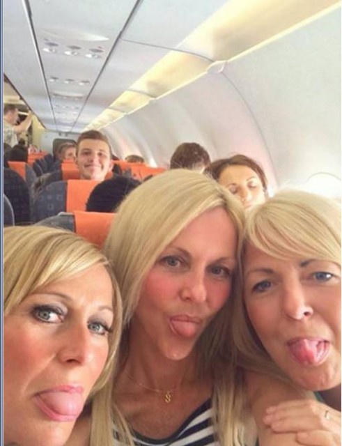 中央の女性シャロン・ホークさんが、友人たちと旅行に行くとき飛行機の中で撮影したものだ。