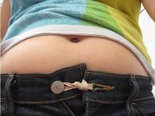 14 ボタンがはめられないジーパンでも、無理してはきたいなら、輪ゴムをこんなふうに使ってみてもいいかも・・・。