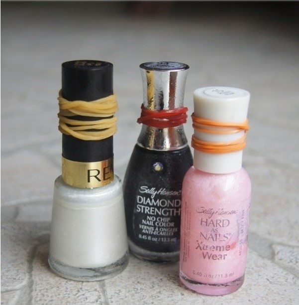 13 12と同様、使っているうちに開けにくくなるマニキュアの蓋にも輪ゴムが便利。