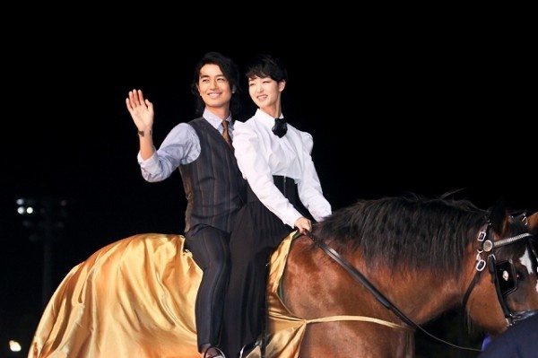俳優の斎藤工と女優の剛力彩芽が31日、大井競馬場で行われたTCK トゥインクルレース30周年記念イベントに出席。二人は東京シティ競馬(TCK)のイメージキャラクターを務めており、仲良く馬に乗って登場。イベント後に感想に求められると、剛力は「2人で乗るのは初めて。ドキドキしました」とにっこり。斎藤のほうはイベント後に報道陣から「思ったより密着していましたね」と突っ込まれ、「隙間があると危ないので」と照れ笑いを見せた。