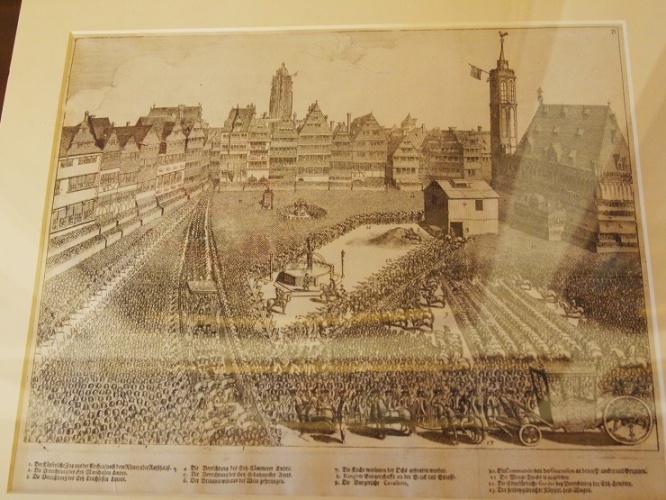 戴冠式後の皇帝が、大聖堂から旧市庁舎レーマーまで行進する様子を描いた画も展示されています。