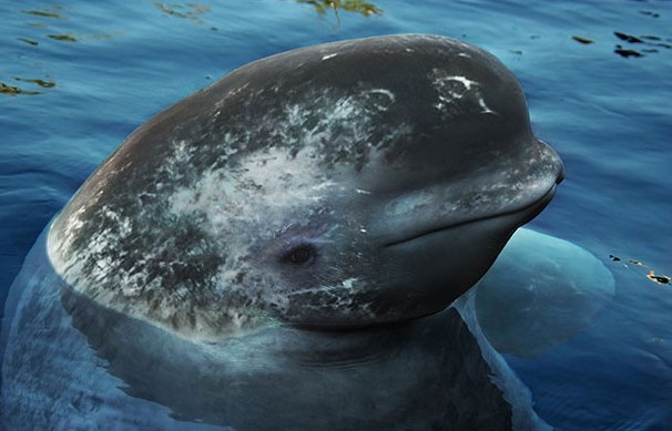 15 丸っこい頭がかわいいこちらは、クジラの一種、イッカクとシロイルカとのミックス。