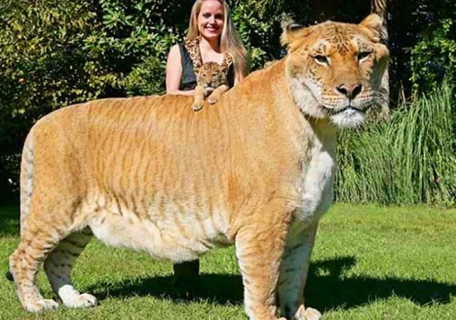 4 大きい体のこの子はオスライオンとメスのトラとのミックス、ライガー。全体的にお父さん似。体は丈夫そうに見えるが、実はこうしたミックス動物にありがちな健康問題を抱えている。要するに無事ミックスに生まれてきても、何らかの疾患を抱えていたり、寿命が短かったりするのだ。