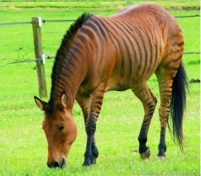 7 人間の手でよく交配されることもあるという、ゾンキー。シマウマとロバとのミックスである。ちょっと顔が大きいな・・・。