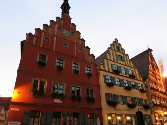 この時間帯のディンケルスビュールの街は、あたたかいオレンジ色の光に照らされ昼間とはまた違った風情があります。
