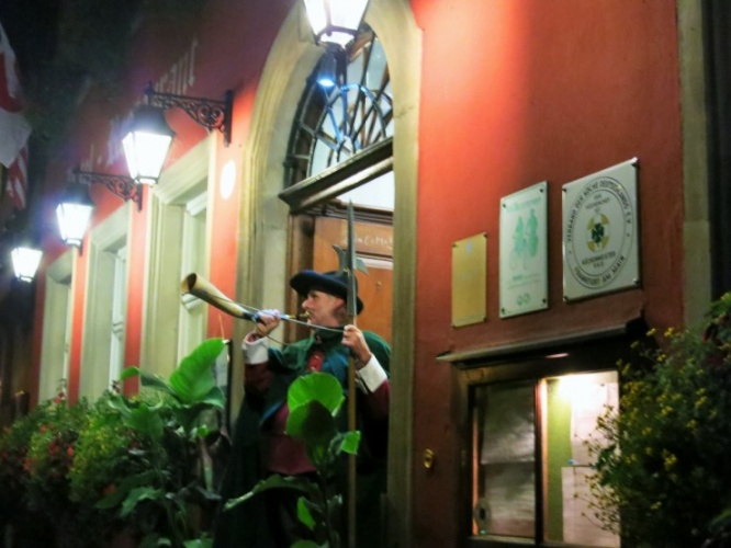 中世の時代、夜警は、酒場が営業時間を守っているか、火事や事件は起きていないかなどを見回る役目でしたが、現在は観光客を楽しませてくれる有名人として親しまれています。