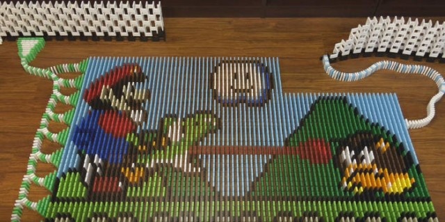 使われた枚数は8万枚以上! 「ドミノ」でマリオの世界を再現!