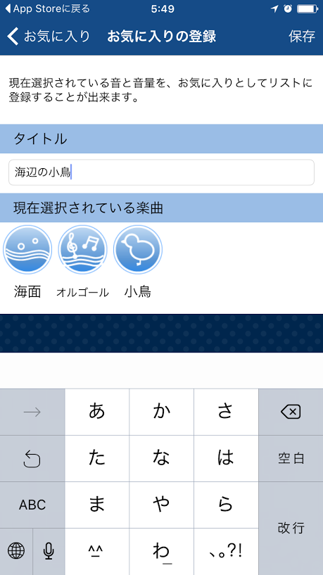 気に入った組み合わせは、「お気に入り」として登録することができ、好きなタイトルを付けることができます。